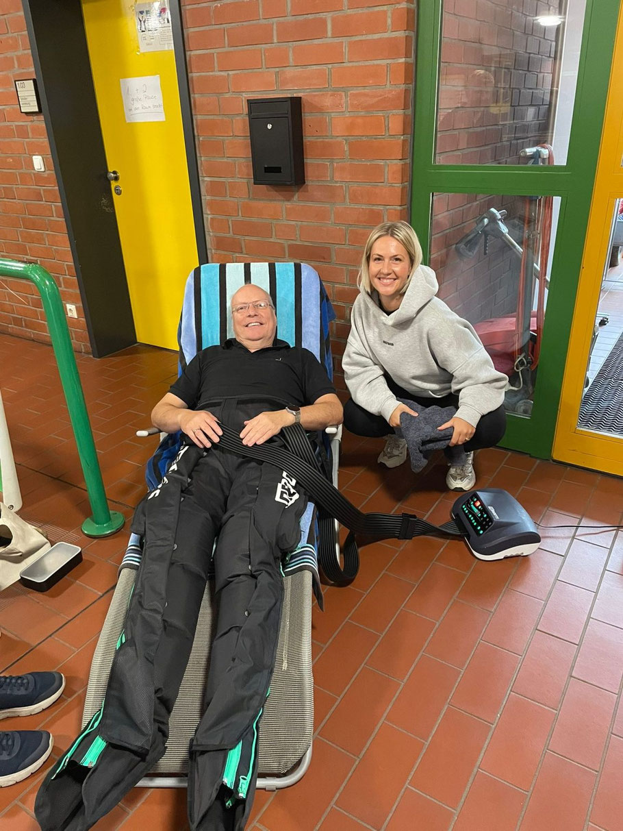 Bedingt durch die nassen Straßen waren Plattfüße an der Tagesordnung. Spitzenreiter war ein Starter mit 9 !! Plattfüßen. Da war es hilfreich, dass wir die Depots mir zusätzlichen Schläuchen ausgestattet hatten. Im Ziel konnten die Fahrer sich unter der Dusche aufwärmen und anschließend am Kuchenbüffet oder Grill stärken. Zusätzlich gab es die Möglichkeit die müden Beine von Kimi dehnen zu lassen oder in die Reboots zu steigen. Letzteres wurde vom Präsidenten persönlich getestet.