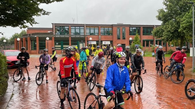 Wetter kann man bekanntlich nicht planen und entgegen eigener Wünsche auch nicht passend bestellen. Am Morgen des 1. Juni 2025 zeigte sich Schleswig zeitweise unter Gewittereinfluss. Der Start der knapp 100 wackeren Radsportlerinnen und Radsportler musste deswegen aus Sicherheitsgründen um eine Stunde verschoben werden. Die Veranstalter ahnten es schon… Aufgrund der teilweise nassen Straßenverhältnisse kam es zu zahlreichen Pannen auf der Strecke. Die Nachfrage nach Schläuchen war hoch. Trotzdem war die Stimmung allerorts bestens. Das lag zum einen natürlich an der schönen 208 km langen Strecke um den Wittensee und die Schlei hinauf bis Kappeln aber zum anderen vor allem auch an den gut gelaunten und freundlichen Organisatoren mit allen Helferinnen und Helfern des RV Schleswig. Und das Wetter wurde auch noch besser. Die Kontrollpunkte an der Strecke waren auch in diesem Jahr wieder mit kulinarischen Leckereien ausgestattet. An einer Station soll es sogar ein edles Getränk aus Italien im Angebot gegeben haben… 🙂
